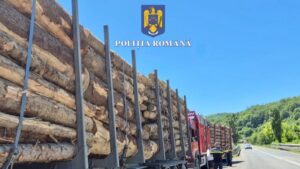 Lemn transportat ilegal și o autoutilitară cu semiremorcă, confiscate de polițiștii din Dărmănești