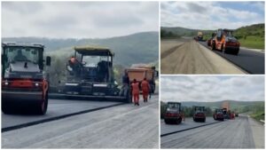 VIDEO: Umbrărescu toarnă asfalt și pe secțiunea Nădășelu-Zimbor a Autostrăzii Transilvania A3